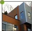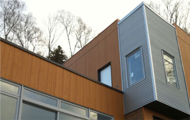 Canexel vertical (couleur cèdre) et d’acier corrugué 7/8 (couleur galvalume).