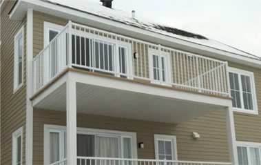 Oka (Pointe aux Anglais), Laurentides - Notre mandat était de fournir et d’installer des rampes en aluminium blanc.